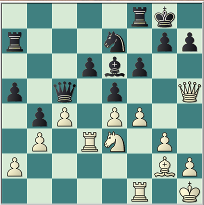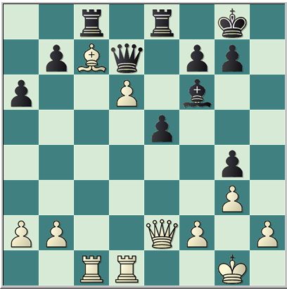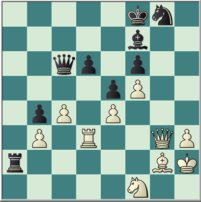 30…Db1+ 31.Td1 Dxa2 32.Txe5 Axc7 33.Te8+ Txe8 34.Dxe8+ Rh7 35.dxc7 el peón por fin llega a la coronación 35…Da7 36.De4+ y el negro abandonó ante la inevitable coronación. Ahora desaparece el posible contínuo[36.De4+ g6 37.c8D Dxf2+ 38.Rh1 y se acaban los jaques] 1–0