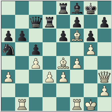 27.Dxh7+! elegante remate para abrir la columna y llegar a h8 27…Rxh7 28.Tf3 y el mate con Th3-Th8 es imparable)