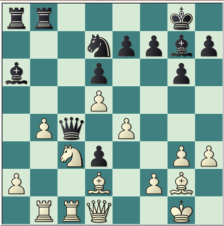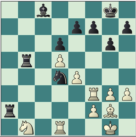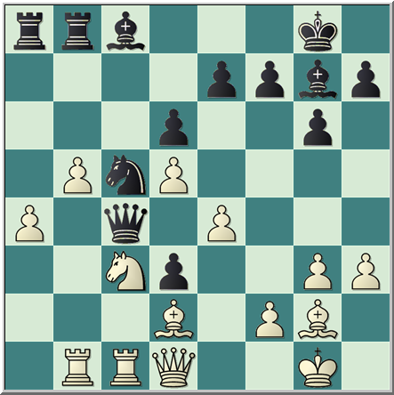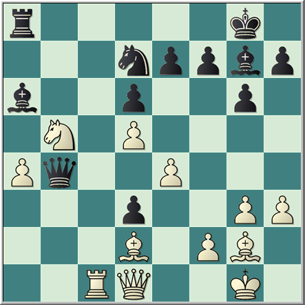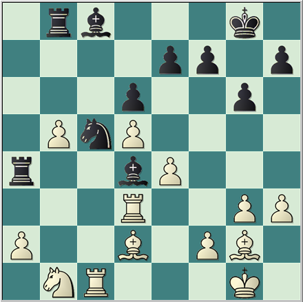 26.Cb1 Da4 27.Txd3 Cc5 28.Dxa4 Txa4 el negro parece haber conseguido un gran bloqueo y los peones blancos del flanco de dama no están ahora bien ligados.Esta idea sirvió al negro para ganar posteriormente la partida.Pero en la siguiente posición el blanco tenía una continuación muy fuerte para mantener la ventaja.