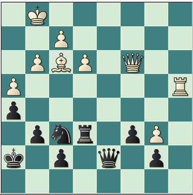 37…Dd6 38.Dxd6 Txd6 39.Axb7 el negro ahora tiene 2 buenos factores favorables. Primero dispone de un peón pasado, y además el caballo ahora puede maniobrar con calma pues el carácter bloqueado de la posición lo permite (de nuevo se ve que la jugada inicial h4 no ha sido exacta).