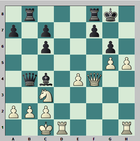 21…Db4 llega un momento clave donde las blancas deben ver como rechazar el ataque sobre b2. Si consiguen hacerlo la victoria será sencilla en el flanco de dama